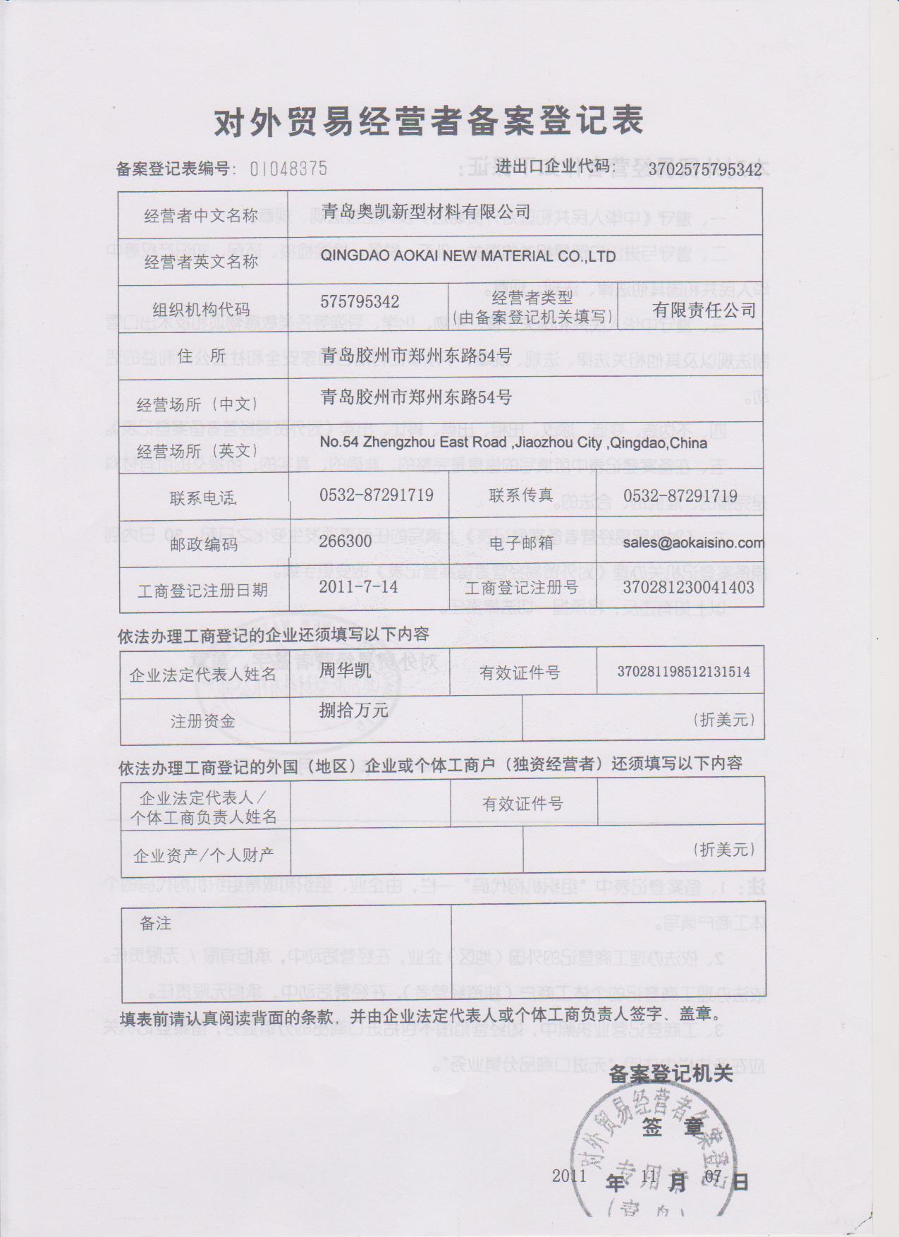 Qingdao Aokai New Material Co.,ltd