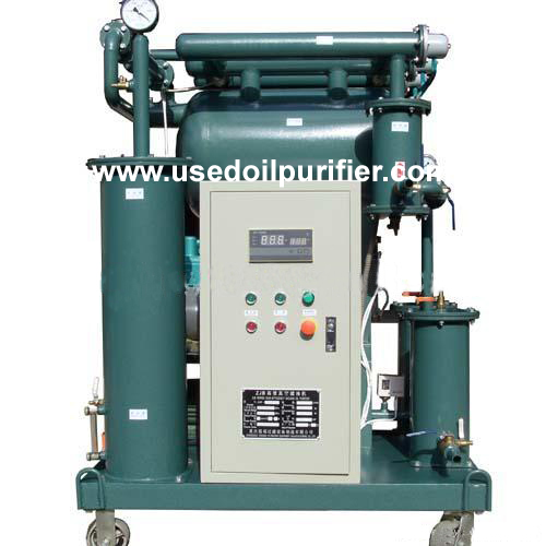 ZJB Single-Stage Vacuum transformer oil refinery machine is mainly used to improve the properties of insulation oil. It can remove trace water, gas, particulate matters etc. From the insulating oil effectively and rapidly so as to boost performance of transformers, circuit breakers, mutual inductors, cable and capacitors which have insulation system. Edges: ◆ Compare with Double-Stage Transformer Oil Purifier, ZJB haven't Roots pump ◆ Eliminates water, gas and impurities effectively by utilizing the unique technology of 3D Stereo-Evaporation, hence improve the voltage withstand strength and the quality of oil, which ensures a safe operation of power generation equipment. ◆ It can inject the insulation oil into the transformer devices, and has the function of electrification online operation. ◆ Enhance the value of breakdown voltage greatly.. ◆ Easy handling and maintenance. ◆ Adopts double infrared liquid control automatically system to control inlet and outlet the oil smoothly. ◆ Lower maintenance and replacement expenses. ◆ ZJB-T series equipment can be used for testing insulator withstand voltage and print the result automatically. ◆ Low maintenance and replacement expresses. ◆ Automatic reverse-washing system will extend the lifetime of filters and improve the performance of the filters. ◆ High performance security system including pressure protection device and automatic temperature controller makes purifier operate safely. ◆ Utilizes coacervation technology, coalescing technology, separating technology and refined purification technology. To remove free, soluble water, carbon, free and dissolved gases and particulate matters from insulating oil effectively and rapidly. ◆ This machine can work independently, also it can work with the oil regeneration system that can eliminate the acid, the color and reduce the PH value effectively, then further enhance the insulation value of oil. Structure ◆Dehydration (Degas) System 1, The vacuum vessel can evaporation area efficiently. The heater, being placed on the vacuum vessel, becomes an evaporator. Thus the evaporation area of vacuum vessel is three times more than that of the general vacuum vessel. This innovation can dehydrate and degas effectively and efficiently. 2, The optimal structure of the dehydration (degas) system enlarges the surface area of oil exposed to the vacuum system and extends the flowing distance of the oil in the vacuum system. Thus there has sufficient time to remove the moisture and gas from the oil by vaporization. ◆Filtering System (particulate matter removal) 1, The filtering materials with variable apertures are made of specialized glass fiber. The sizes of the filtering fiber and aperture dwindle gradually in the different filtering stages. The impurities with different particulate sizes are filtered step by step. The capability of removing particulate matters and impurities is improved greatly by this method. 2, The filtering system has stable and prefect filtering fineness. The filtering fineness has several grades, including 0.5, 1, 2, 3, 5, 6, 10 Micron etc. Oil β>=1000 after filter. 3, The filtering system is equipped with reverse rinse and filth device. It improves the effectiveness of filtering and extends the lifetime of filter awfully. ◆Oil heating System 1, The unique heater structure heats the oil uniformly. 2, Oil Heater System assures less then 1.0 w/cm2. During the heating process, the deterioration of the oil caused by overheating is avoided. 3, The oil temperature can be adjusted between 20C to 80C. The heater is controlled manually or automatically. The heater will stop automatically when the oil temperature reaches a certain degree. 4, Being installed with safety protection devices, the heating system is secure and reliable. The heater will stop operation automatically when the oil volume of inlet is too low to avoid the damages of the heater.
