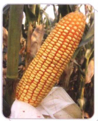 95 days maturity after summer sowing, well developed root system, resistant to disease, drought and high temperature. Plant is 260 cm high, compact shape, ear position is 105 cm tall with full kernels, leaf is narrow and grow upwards, tube shape kernel is 24cm long with 14-16 rows and 40 kernels per row. White ear axis and yellow kernel, full kernel rate is 88% ~ 90%, 1000-kernel weigh 300 ~ 330gr; suitable planting density is 60000 pl/ha.